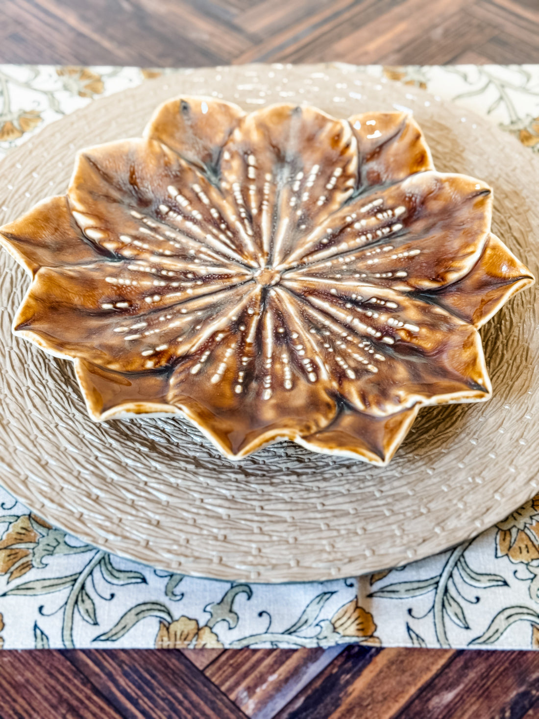 Round Stoneware Flower Plate