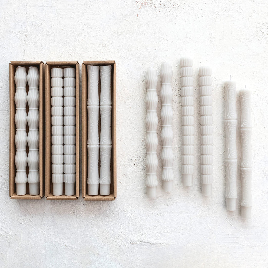 Unscented Twisted Taper Candles in Box, Grey, Set of 2