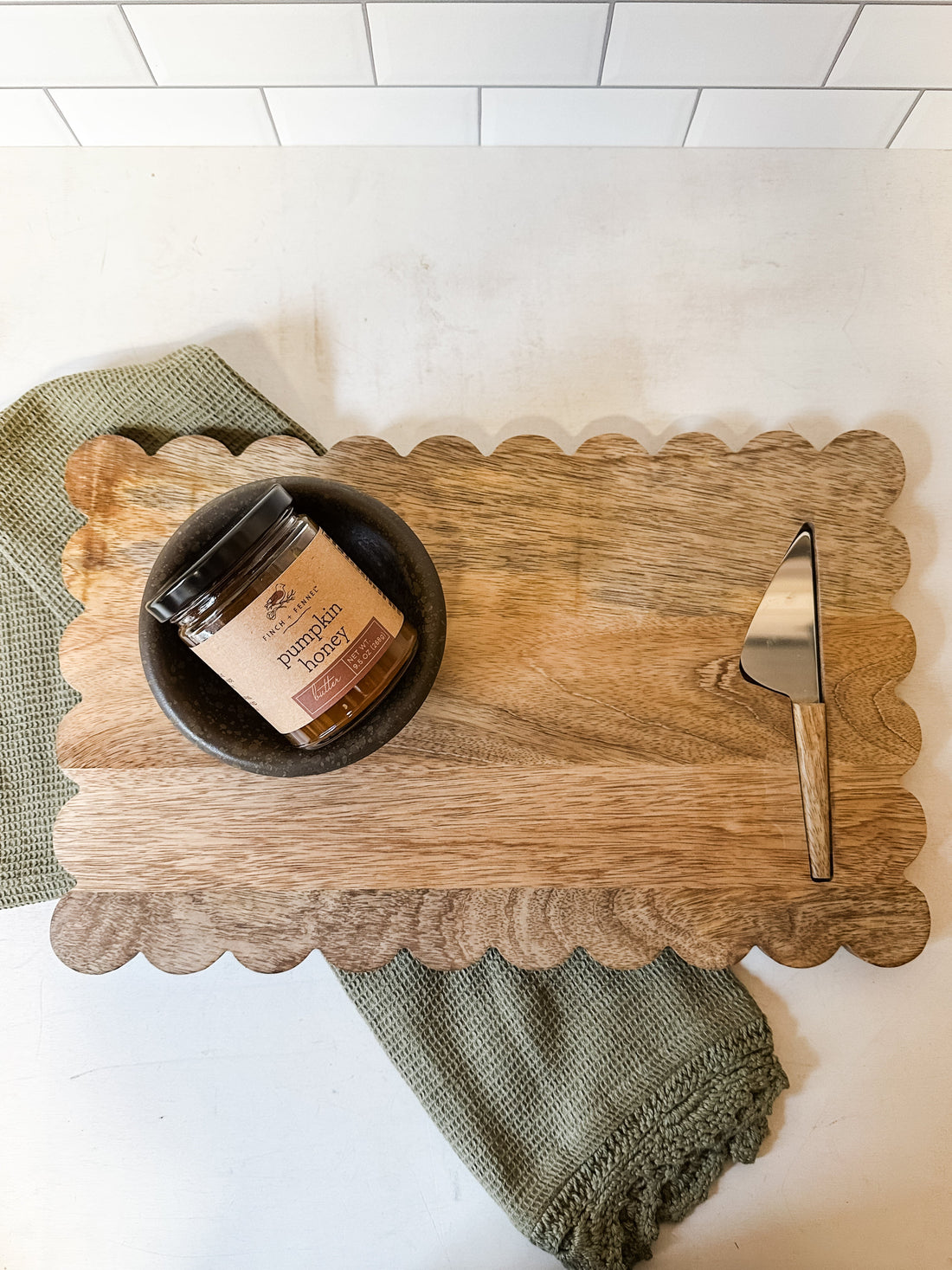 Mango Wood Scalloped Cheese Board With Stainless Steel Cheese Knife, Set of 2