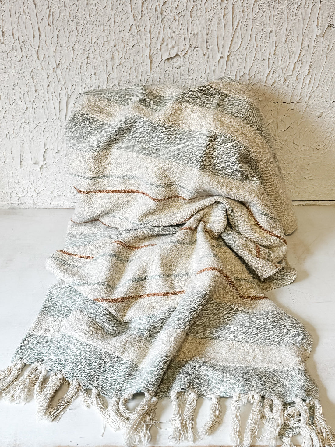 Woven Cotton Printed Throw with Sherpa Back, Flower Pattern & Fringe