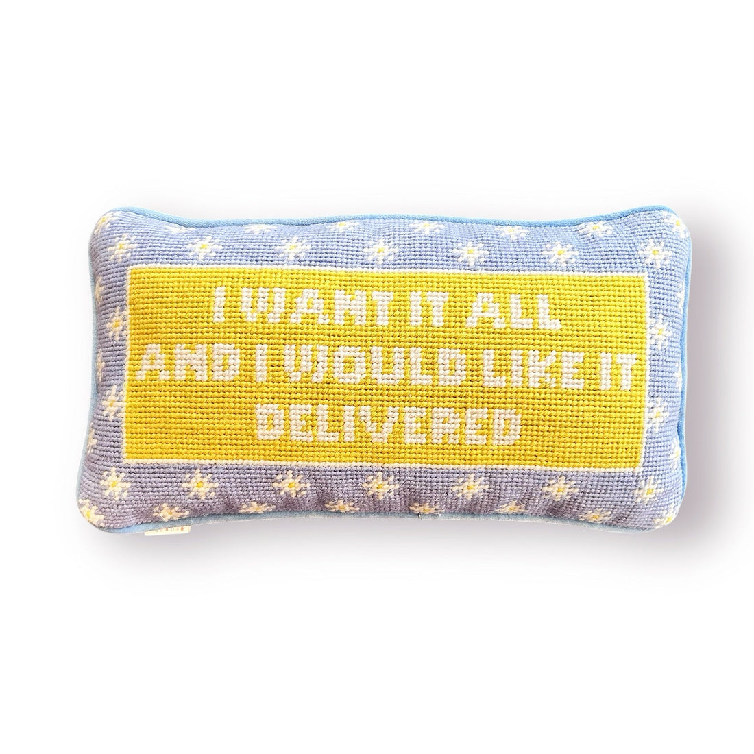 I want it all and I would like it Delivered Needlepoint Pillow
