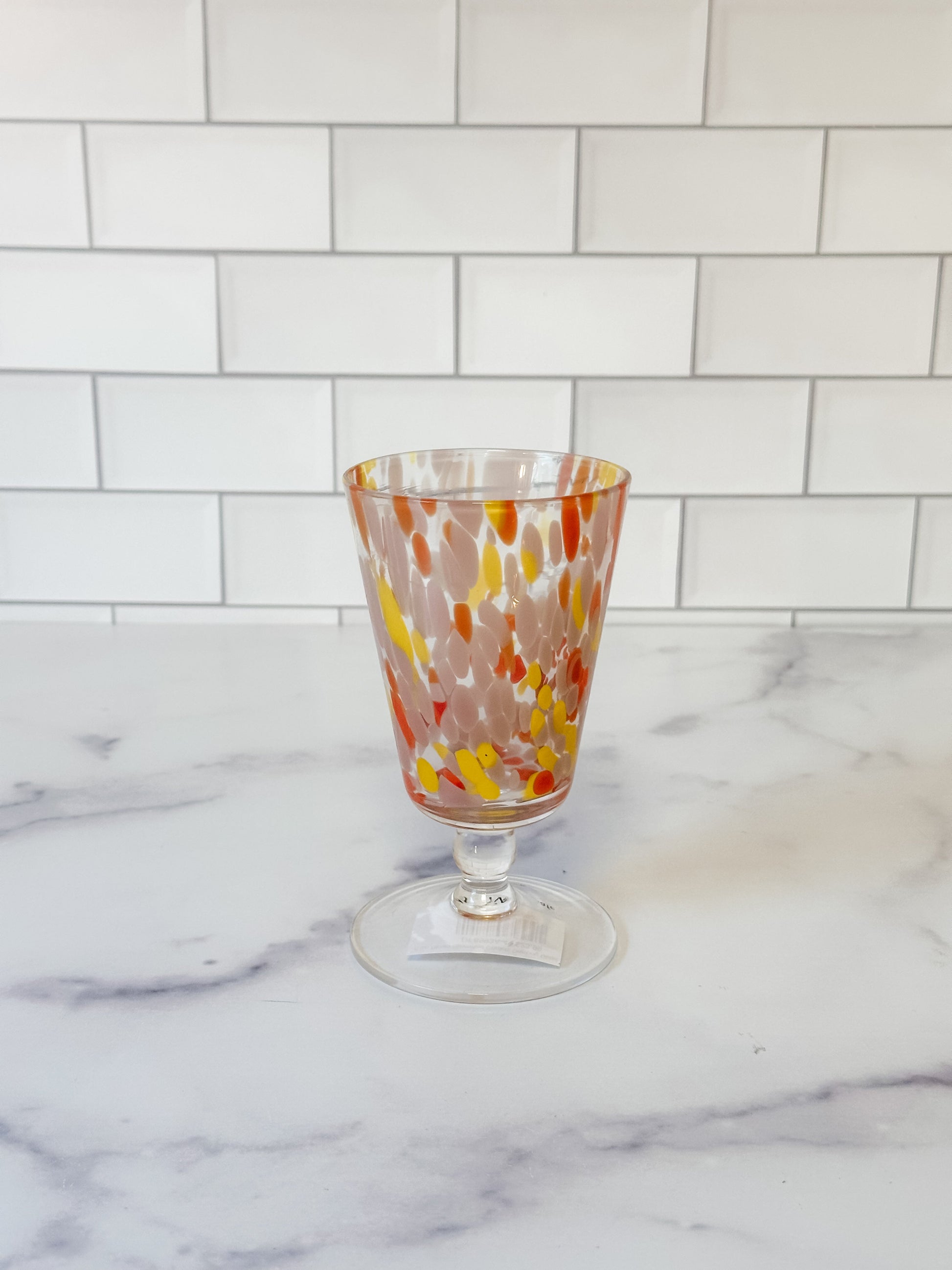 Bring color and character to your table with our 8 oz. Blown Stemmed Confetti Drinking Glasses. Handcrafted with a vibrant confetti pattern and elegant stemmed design, these glasses come in four unique color styles—perfect for mixing and matching or creating a lively set. Each piece is one-of-a-kind thanks to the hand-blown glass technique, adding a playful, artisanal touch to every sip.
