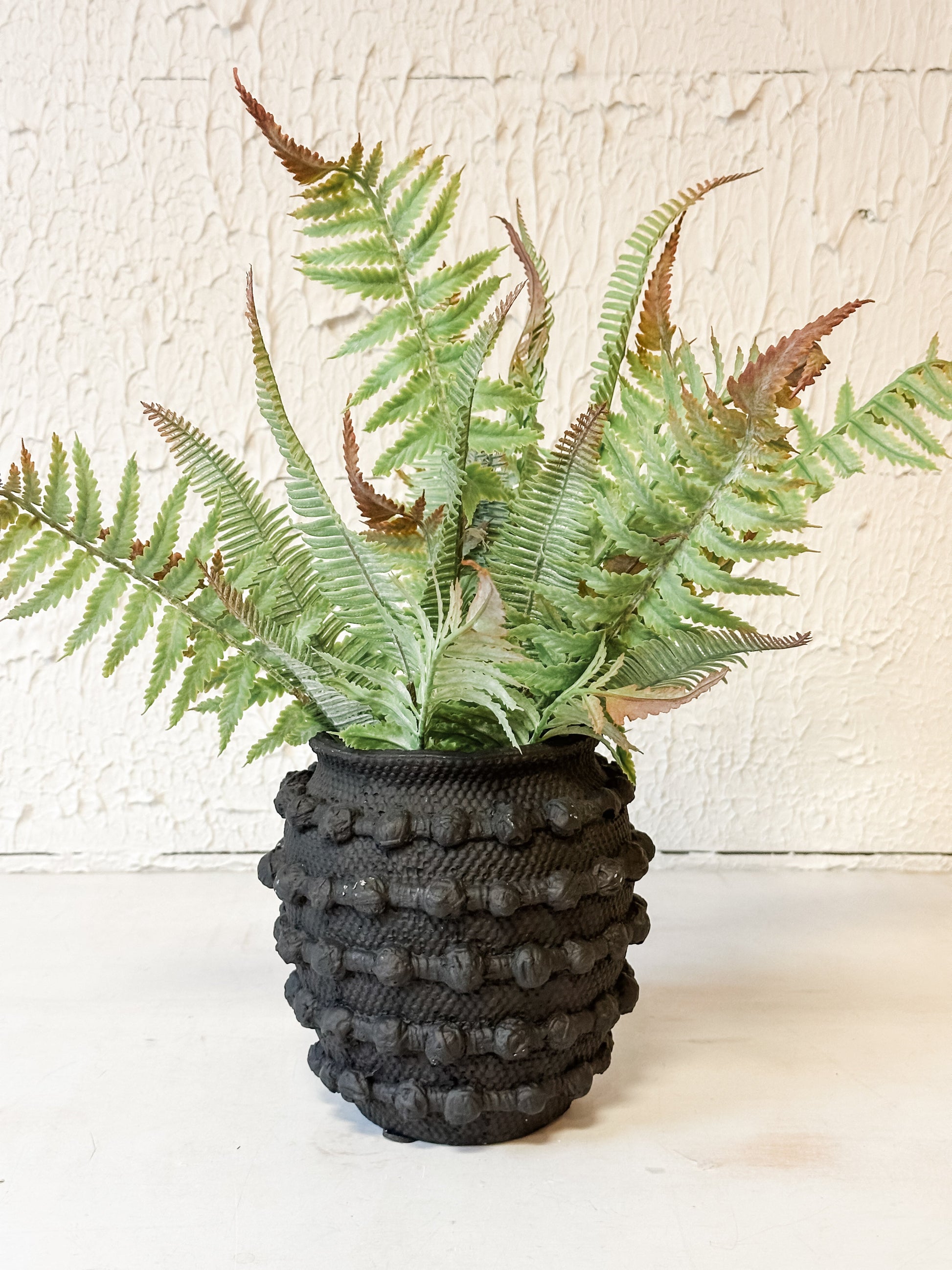 Elevate your home decor with our striking Black Textured Knot Cement Vase. Measuring 6.5" high by 4.5" wide, this unique vase combines contemporary style and organic charm, featuring a distinctive knotted texture in sophisticated matte black cement. Perfect as a standalone statement or styled with fresh or dried botanicals, it effortlessly adds depth and interest to your space.