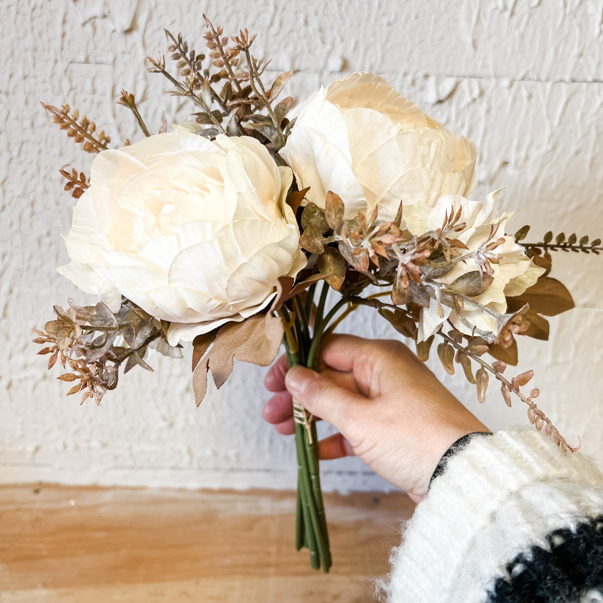Add a touch of spring to your home with our 12" high faux dried peony bush. Available in ivory, salmon, and crimson, this colorful arrangement is perfect for brightening up any space. No watering necessary, just enjoy the beautiful blooms all year round.