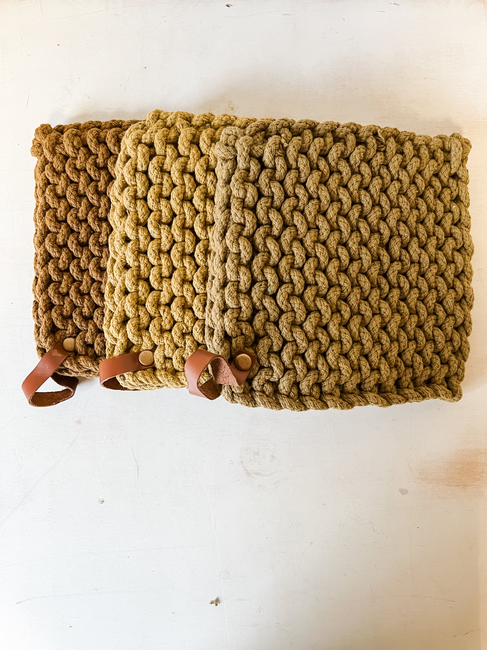 Introducing our Hand Crocheted Cotton Pot Holder, the perfect kitchen accessory! Made with 100% cotton and featuring leather loops for easy hanging, this 8" square pot holder is both functional and stylish. Protect your hands while adding a touch of charm to your kitchen decor.