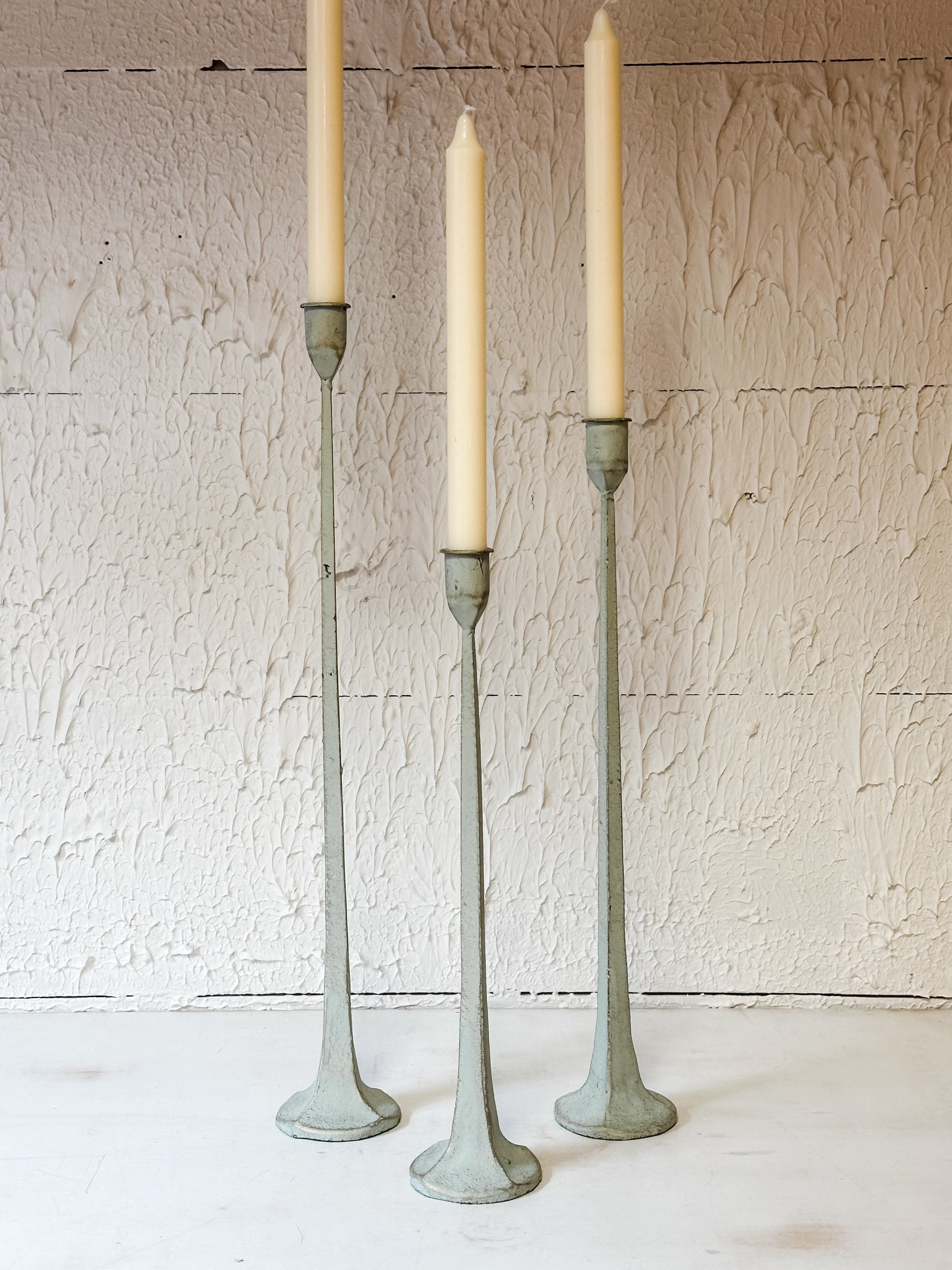 Hand Forged Metal Candle Holders, Verde Green Patina