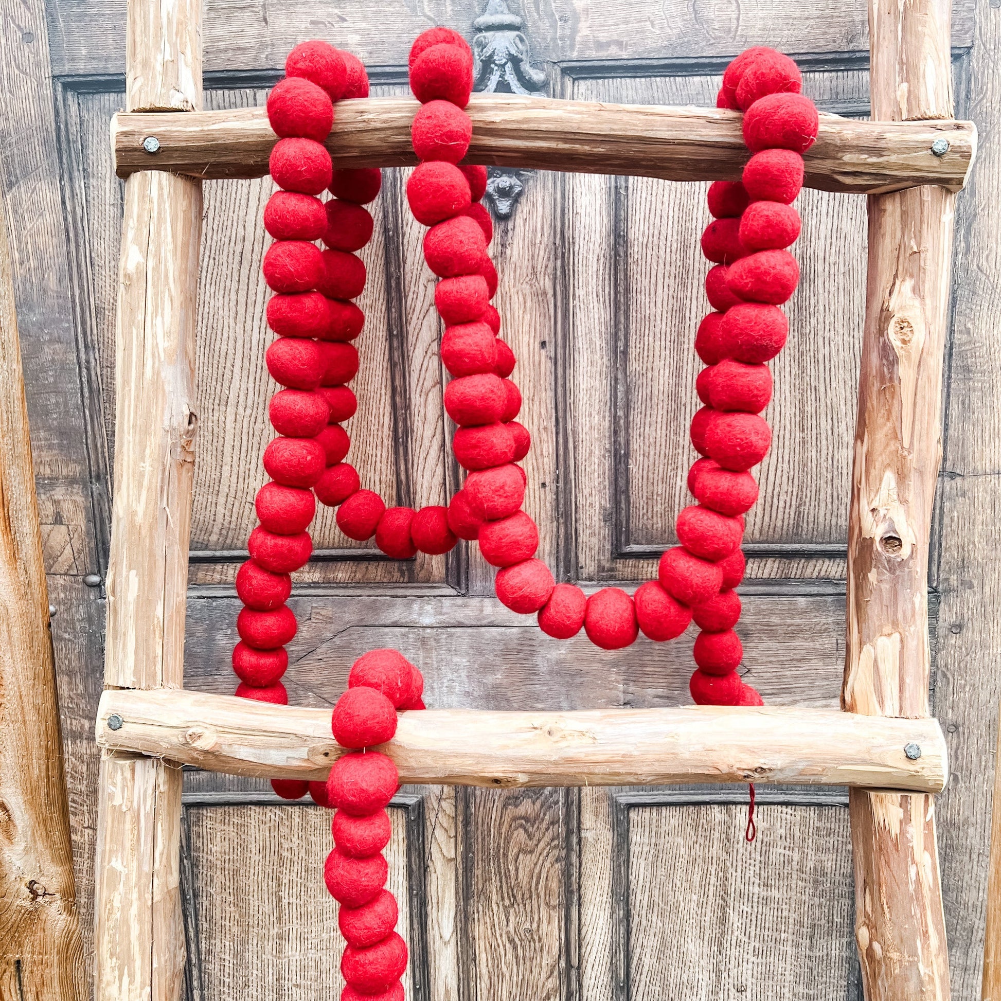 Brighten up any room with our stunning Handmade Wool Felt Ball Garland! Measuring 144"L x 1-1/2"H, this vibrant red garland comes in a printed drawstring bag for easy storage. Handcrafted from high-quality wool, it will add a touch of warmth and playfulness to your home decor.