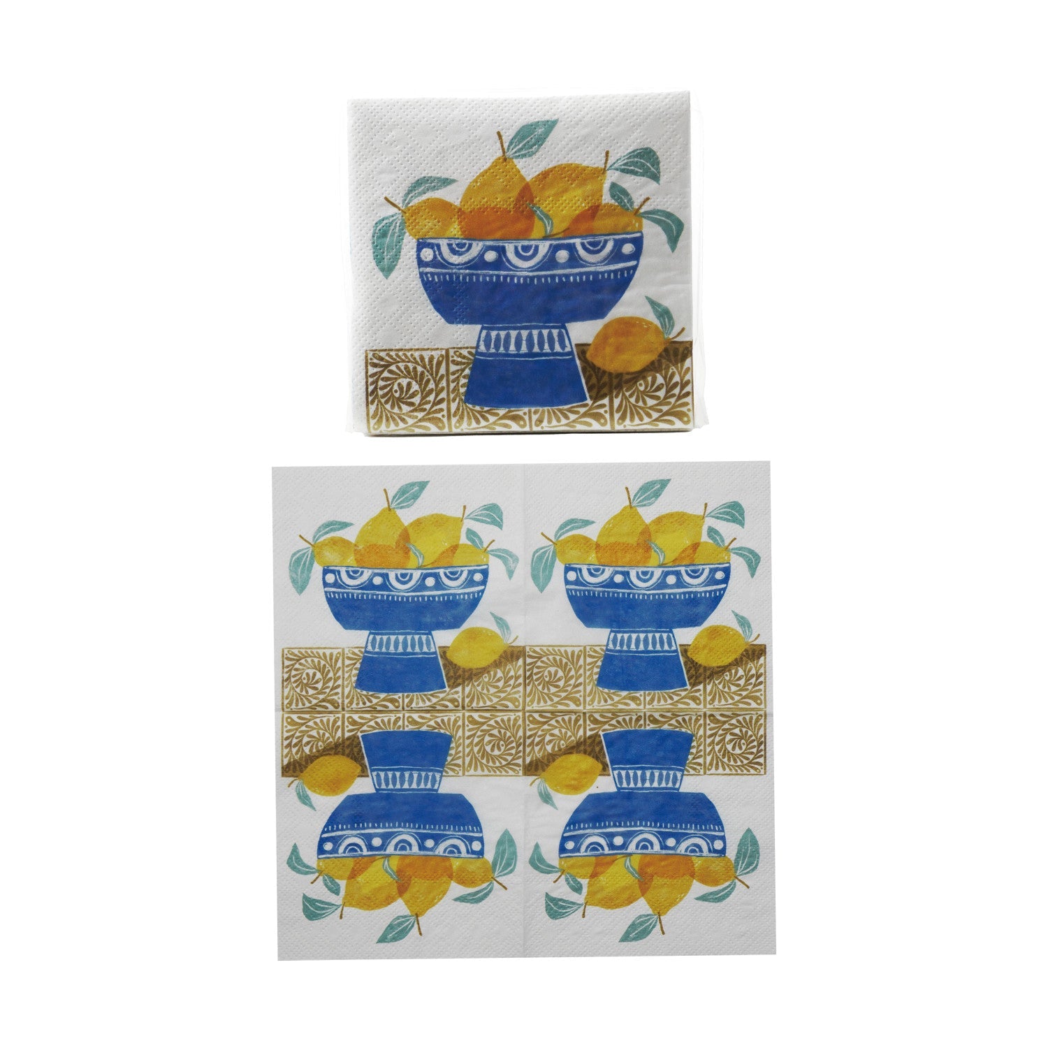 Paper Cocktail Napkins with Fruit in Bowl Pattern