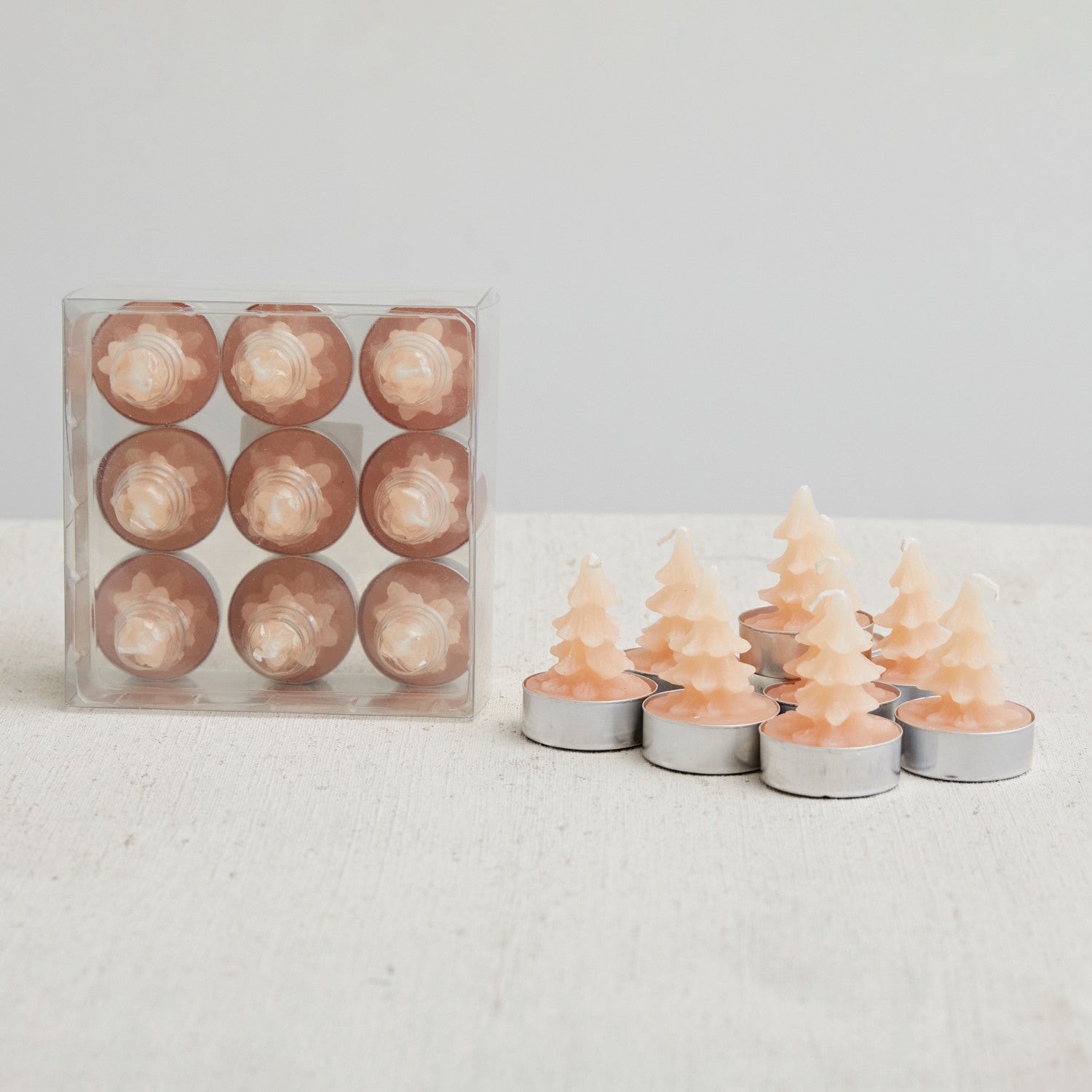 Round Unscented Tree Tealights, Blush Color, Set of 9
