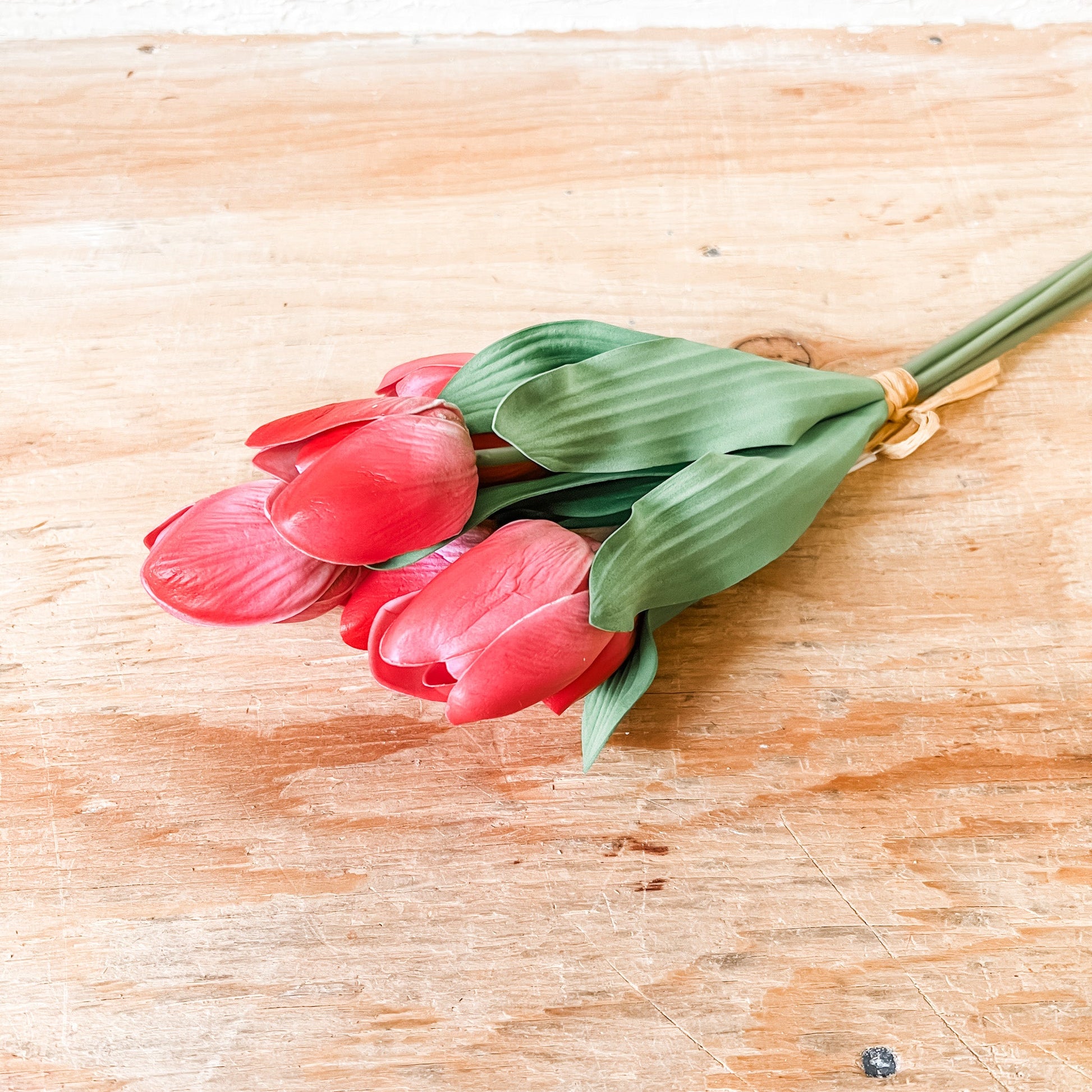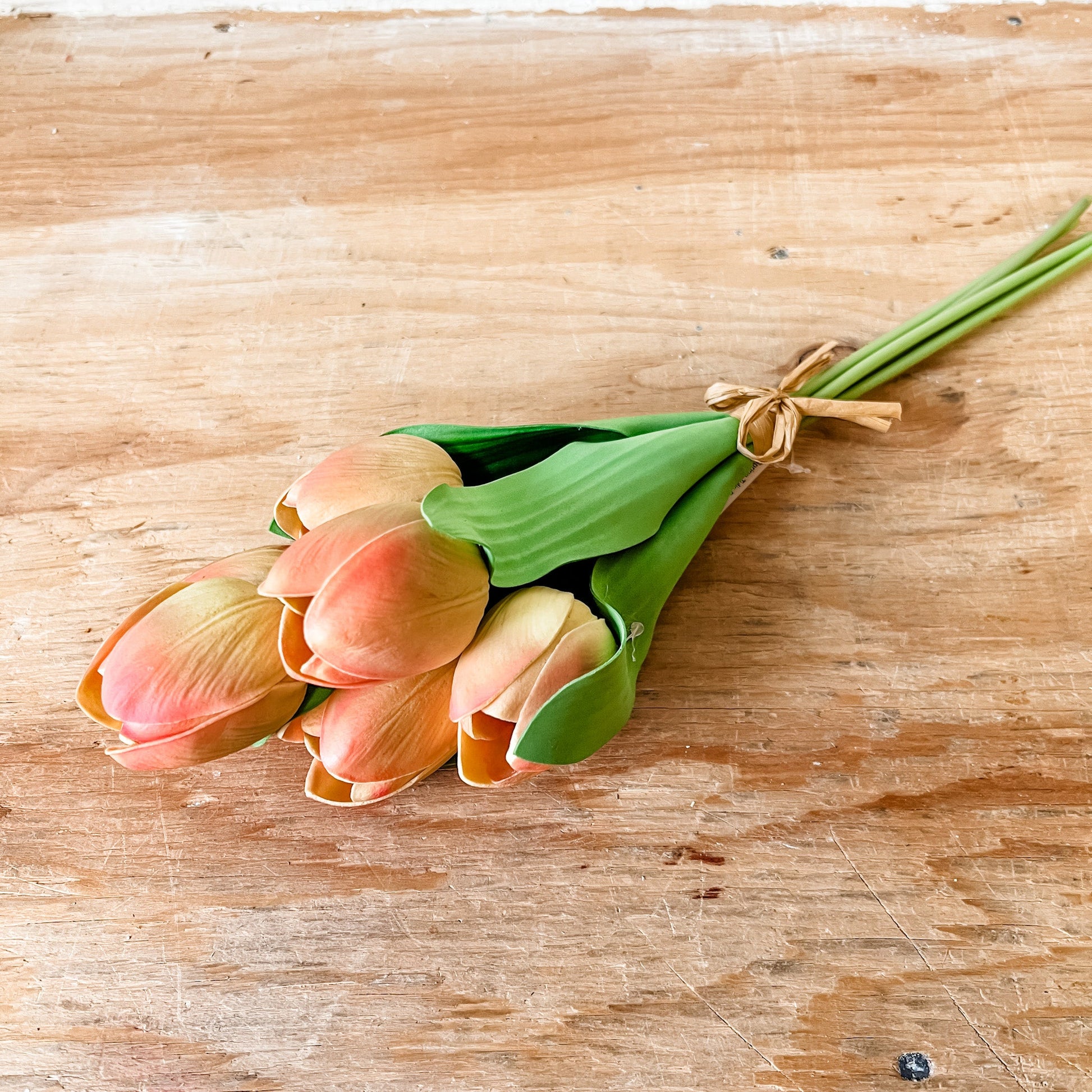 Brighten up your home with our Spring Tulip Bundles. These 17-1/2" faux tulip bundles come in a bundle of 6 with 3 beautiful colors to choose from: cream, pink, and salmon. Add a touch of spring to any room with these elegant and realistic tulip bundles.