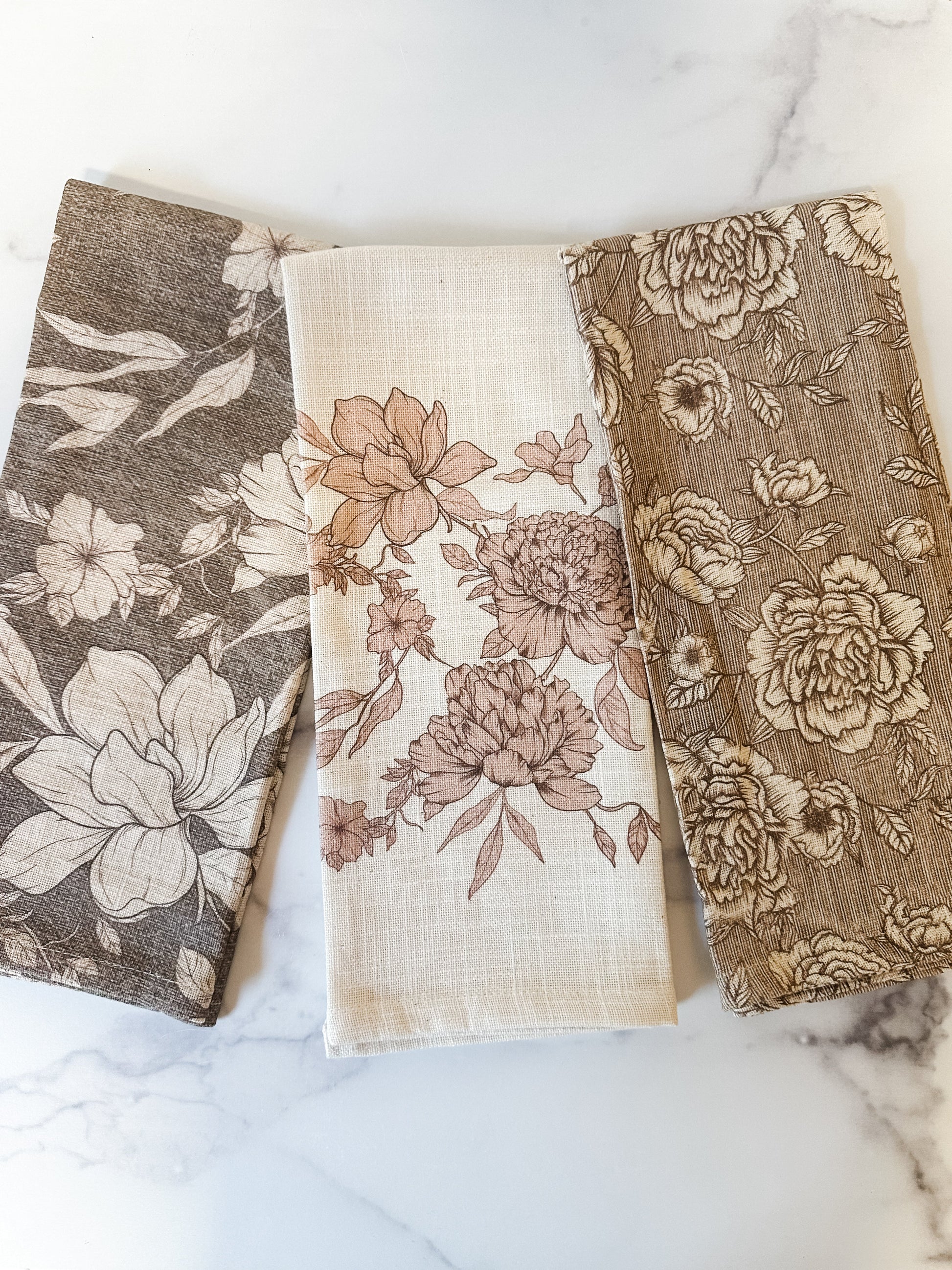 Featuring a timeless sepia floral print, these towels bring a soft, vintage-inspired charm to your kitchen while handling everything from drying dishes to lining bread baskets with ease.