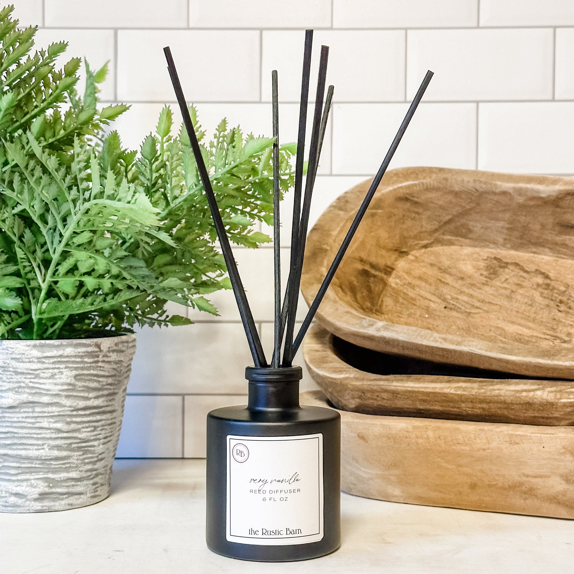 Create a warm and comforting atmosphere with Very Vanilla Reed Diffuser. This classic gourmand fragrance oil features notes of vanilla bean, buttercream, and cake, with a hint of bourbon. Perfect for any room, any time of year. Comes in a 6oz bottle with 7 reeds. Ideal for farmhouse-style guest bathrooms.